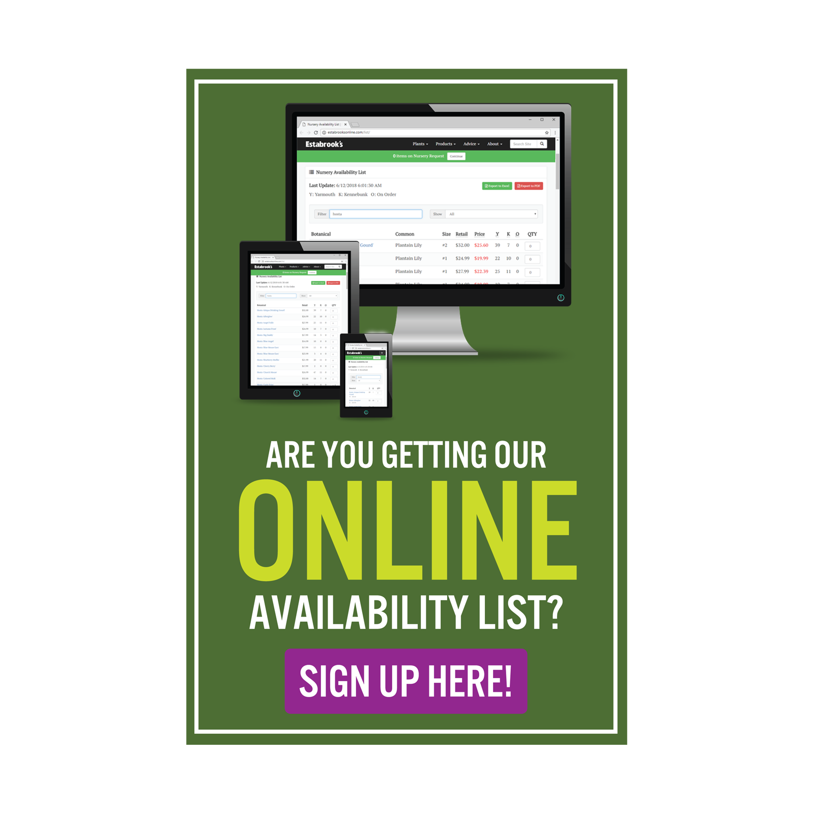 Allows customers to create and manage an online wish list of plants and products, and receive in-stock notifications
