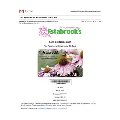 Custom code to allow for online purchases of gift cards with instant email delivery